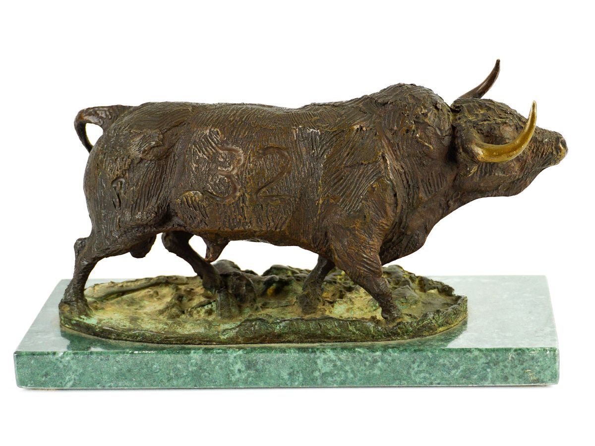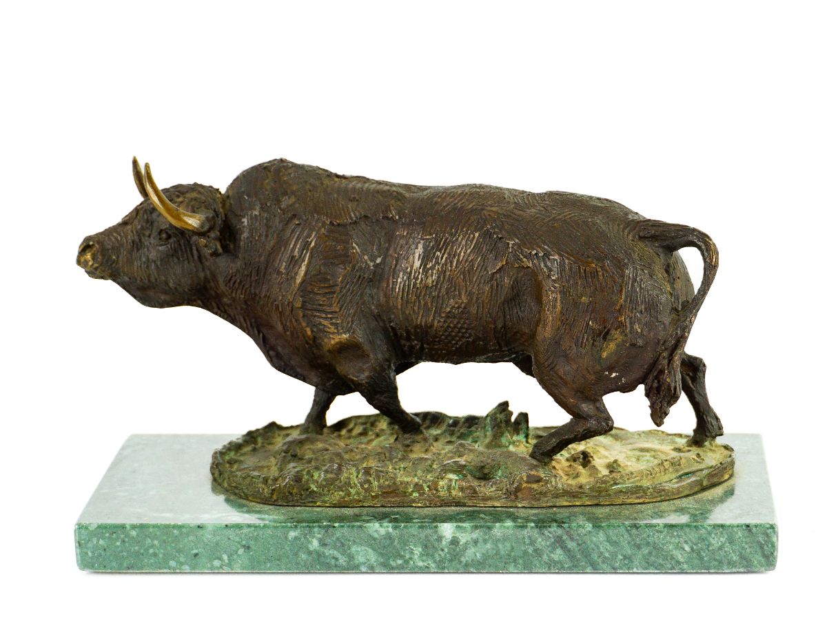 Escultura em bronze sobre base em mármore