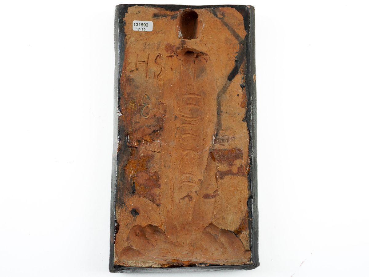 Placa de suspensão mural em alto relevo representando figura feminina com lua e estrelas