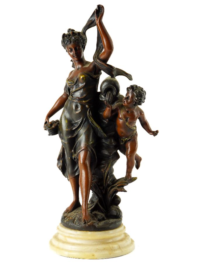 Escultura em bronze de arte (antimônio) patinada, sobre base em pedra mármore