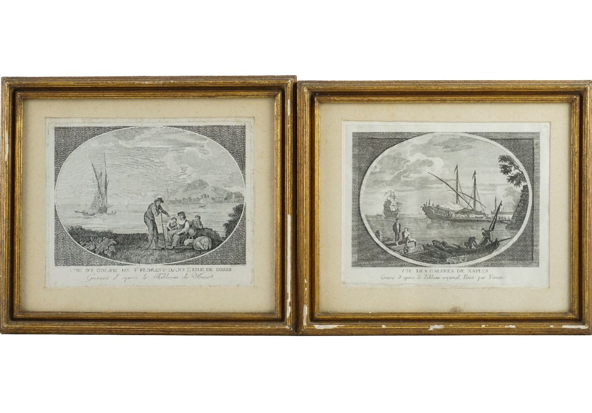 Juntam-se 2 gravuras sobre pinturas de Vernet com cenas marítimas