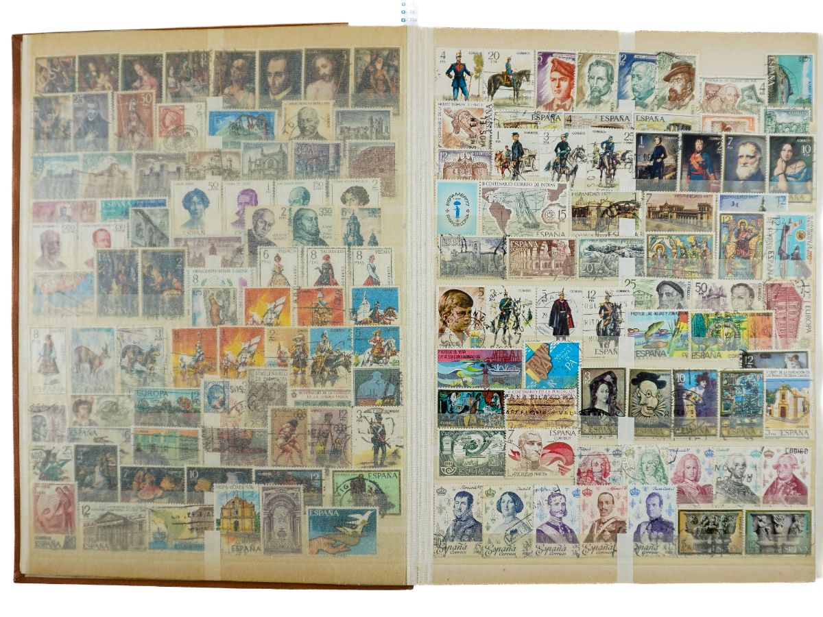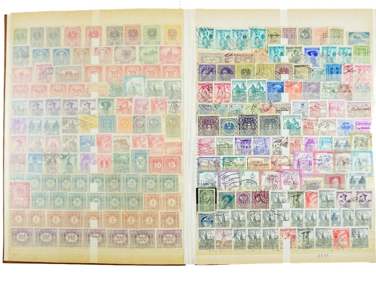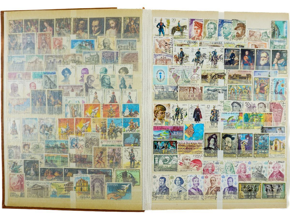 Um classificador com 1120 selos de Espanha e 884 selos da Áustria.