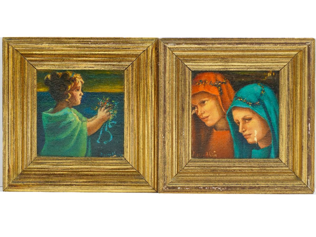 Figuras femininas. 11,5x11,5 cm. Pequenas faltas de tinta