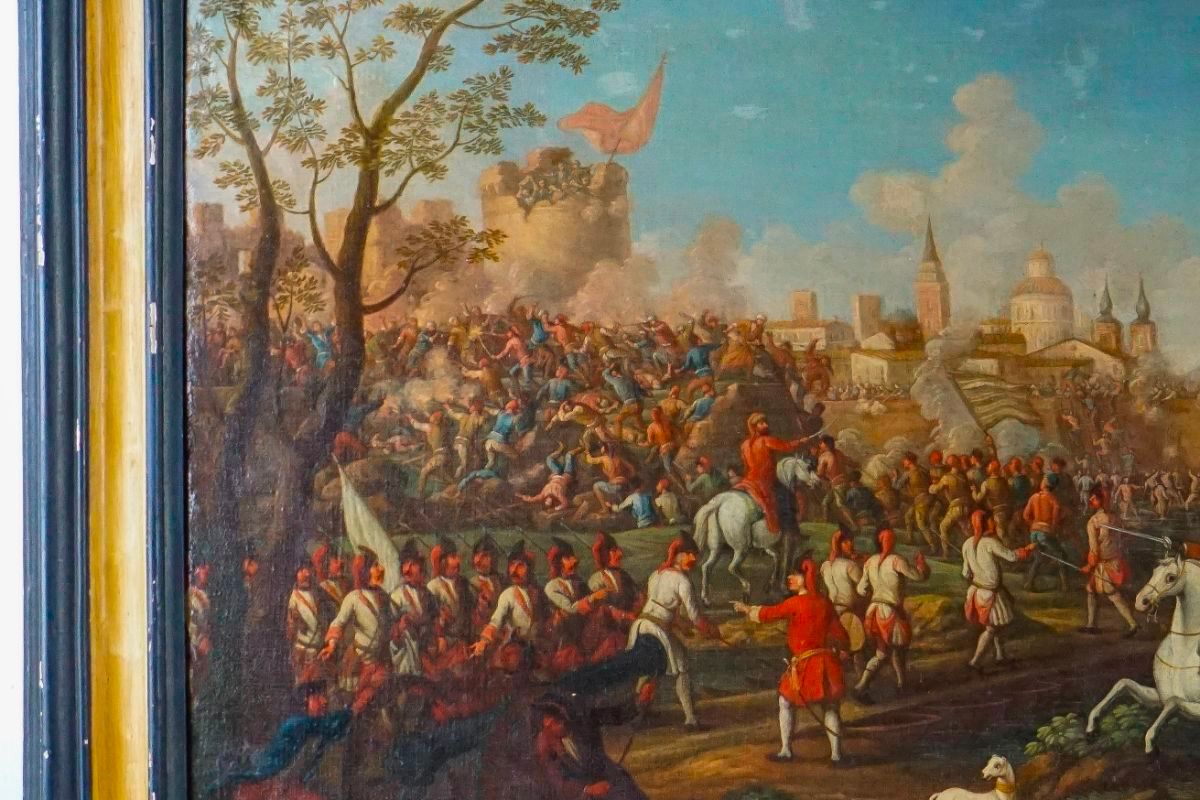 Nota: composição minuciosa de grande qualidade; batalha não identificada; quadro reentelado; pequenos restauros antigos