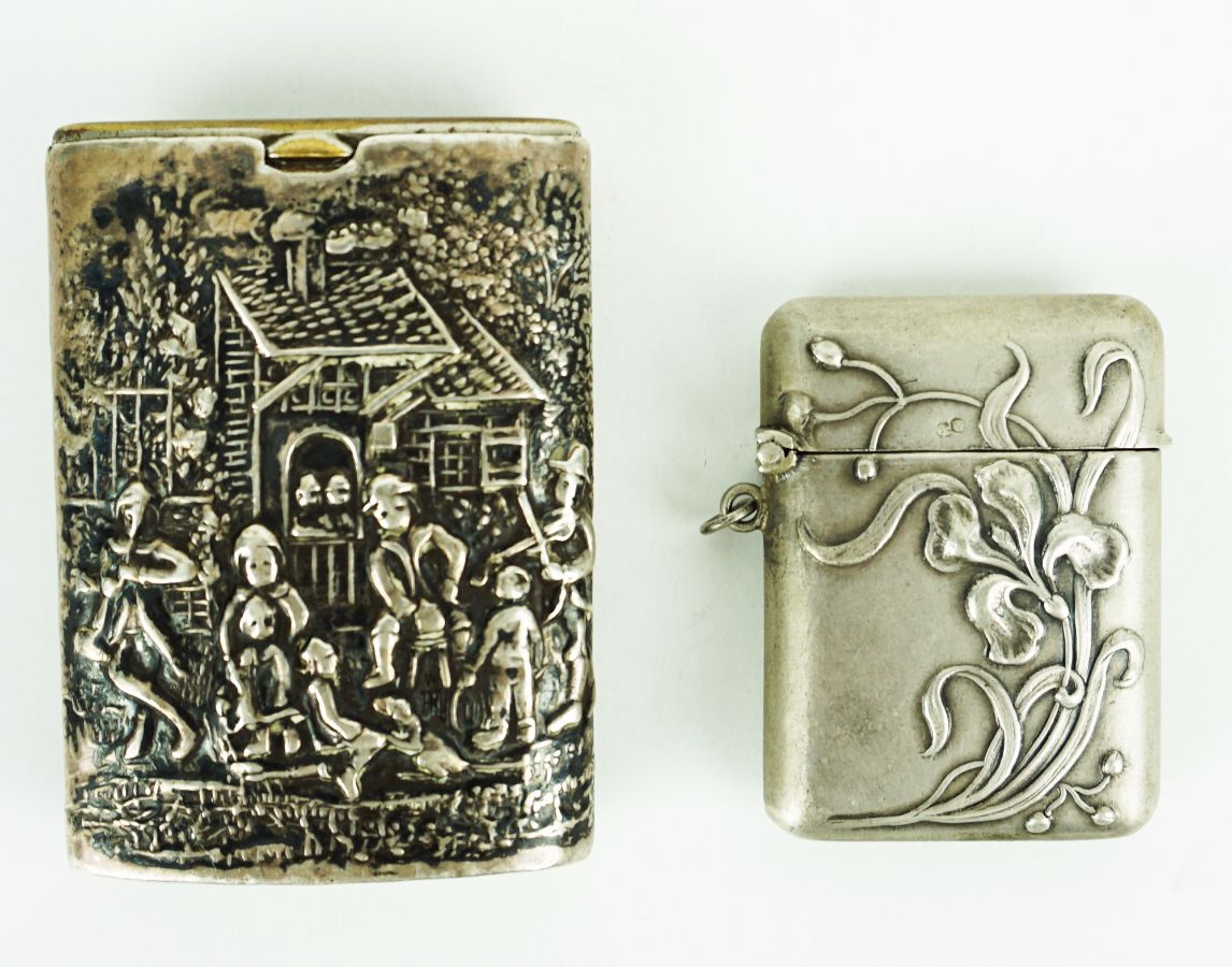 - Uma em prata Portuguesa com punção Cabeça de Javali 2º título 833 milésimas, decoração Arte Nova, peso: 13,40 gr.