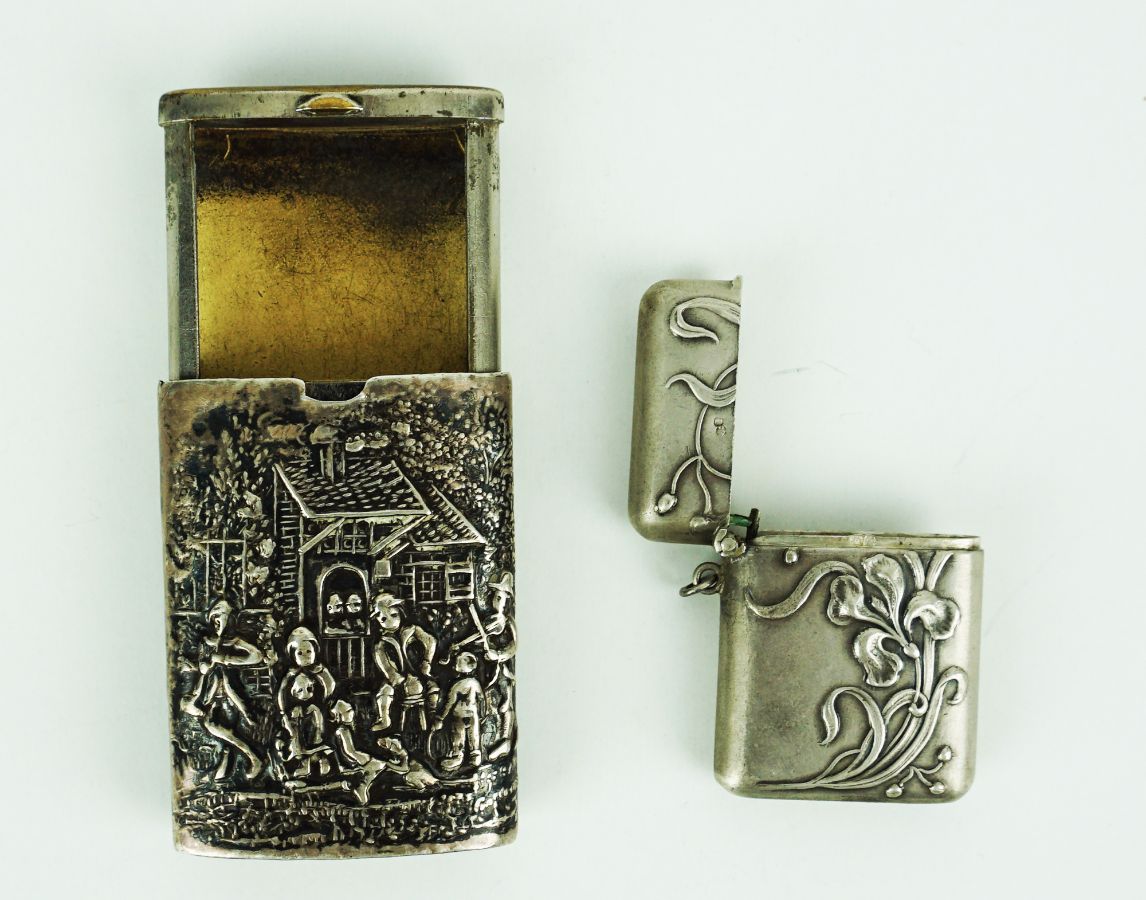 - Uma em prata Estrangeira de 830 milésimas, decoração com cena musical, peso bruto: 58,40 gr. / peso da prata: 12,10 gr.