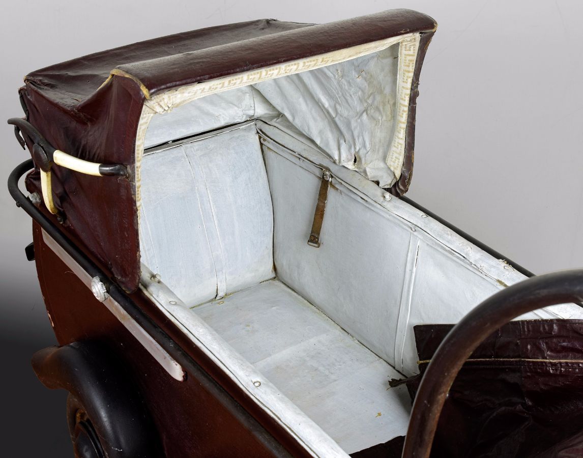 Caixa em madeira, chassis em metal e capote em couro
