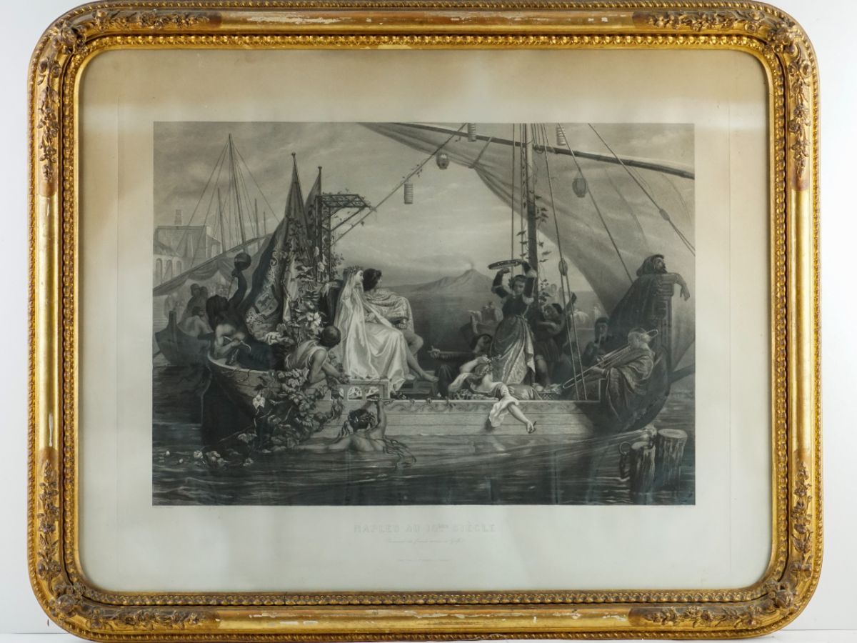 Nota: margens amareladas; moldura em madeira e gesso doiurado (com defeitos no dourado)