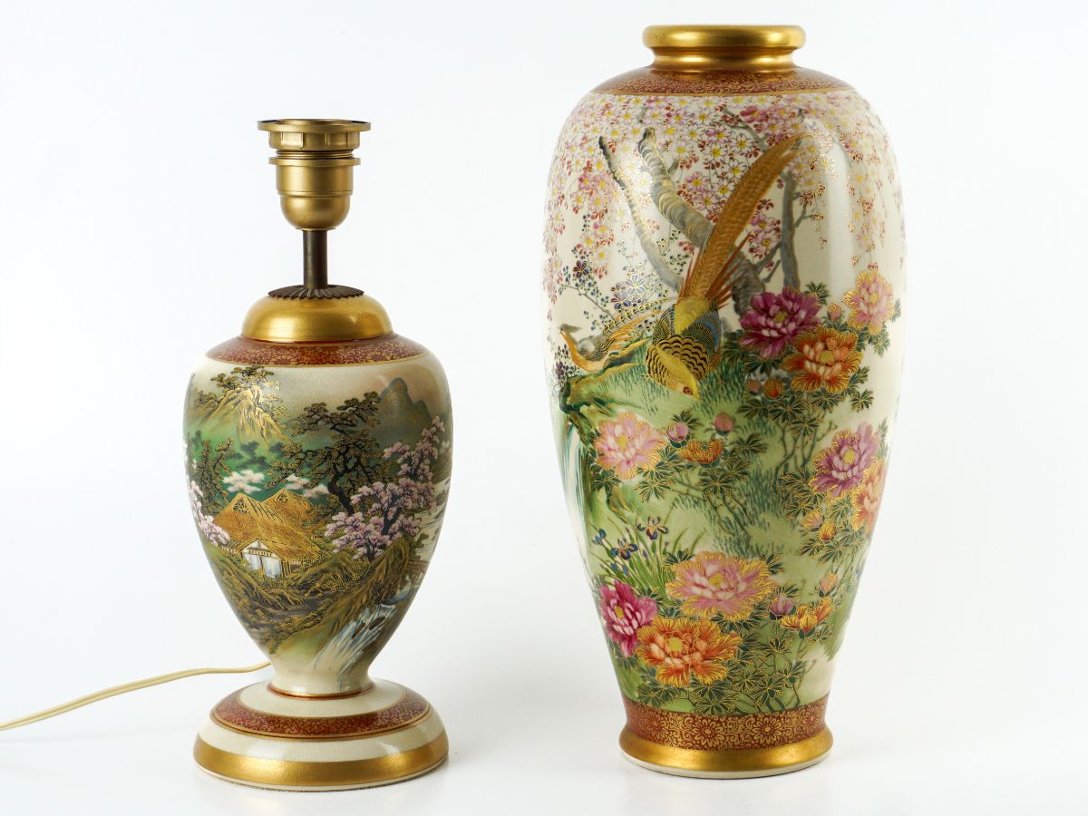 1 Jarra adaptada a candeeiro eletrificado com decoração de paisagem. Não testada