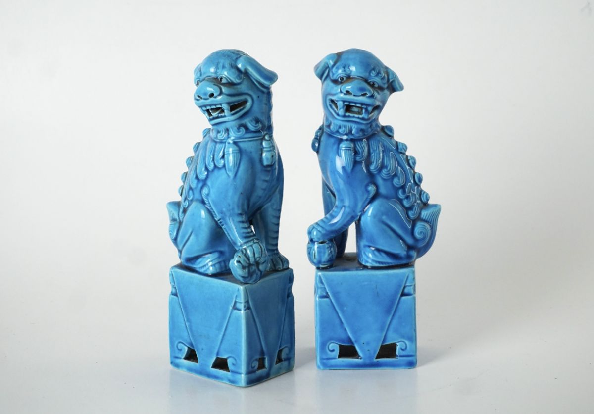 Par de esculturas em porcelana chinesa
