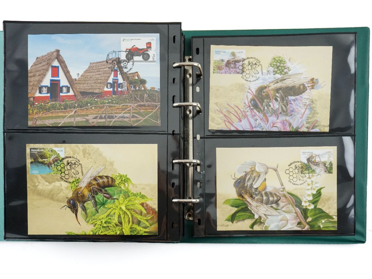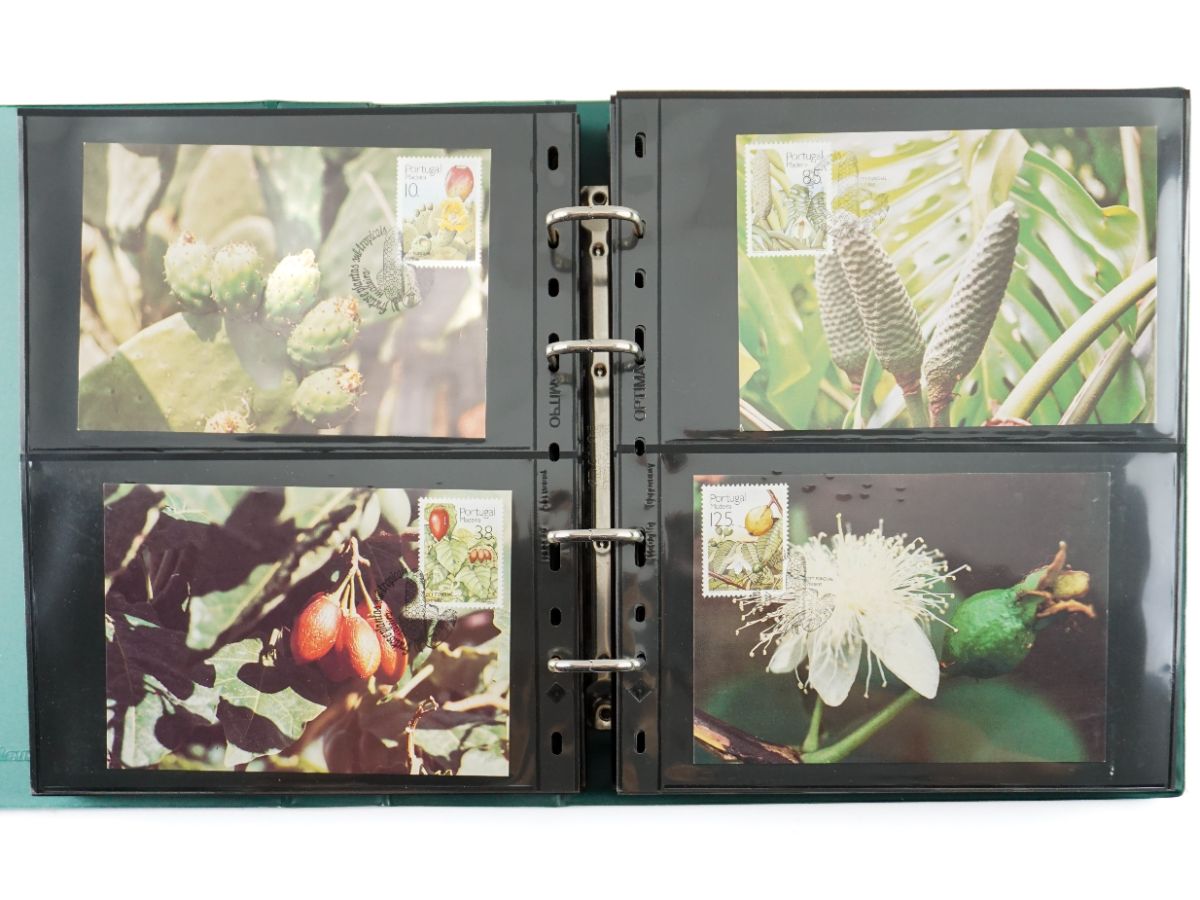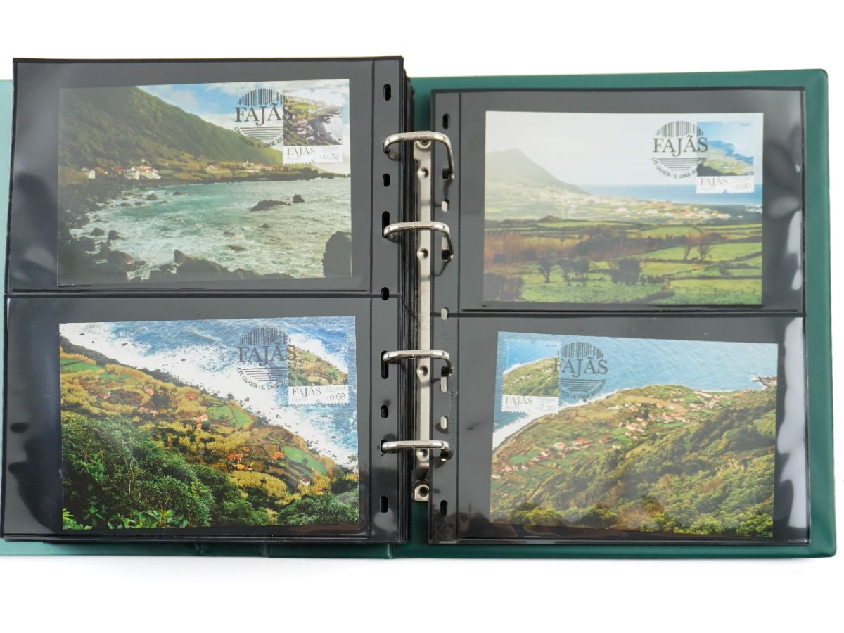 álbuns próprios para postais (1 álbum por cada ilha), com capas verdes e folhas de bolsas pretas da
