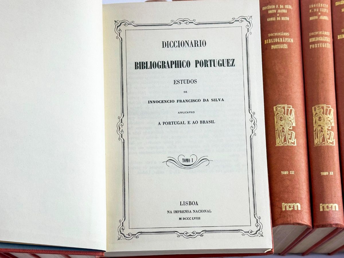 In 8° gr. , 23 volumes + Aditamento ao Dicionário Bibliográfico Português + Subsídios para um dicionário