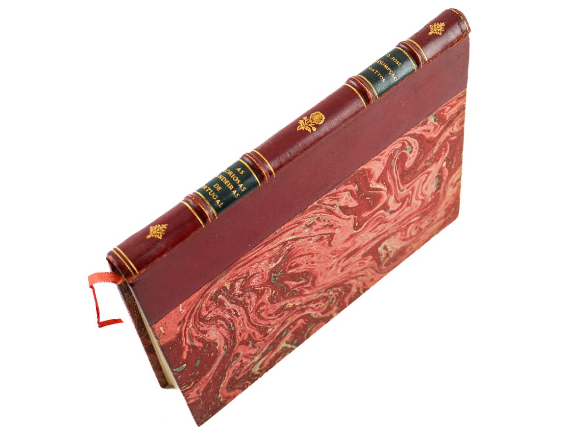 Encadernação meia francesa em pele. Capas de brochura preservadas.
