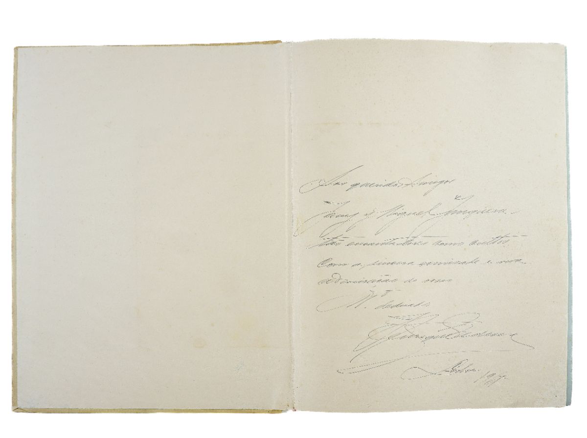 Fólio, págs. Inum. Ilust. E. Encadernação do editor em tela. Dedicatória de Henrique Medina