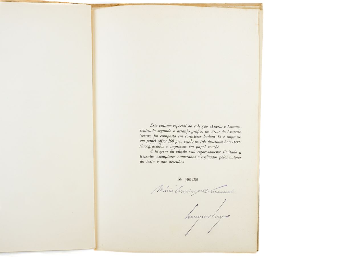 Exemplar n° 286 de uma tiragem total 300, assinados pelos autores do texto e desenho.