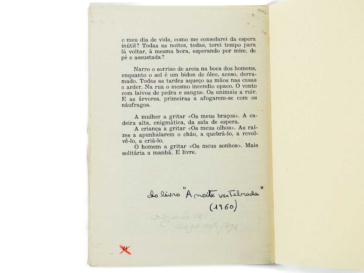 A Noite Vertebrada, edição de autor, Colecção “a Palavra”, nº 4, Faro 1960, exemplar manuscrito pela autora, com anotações.