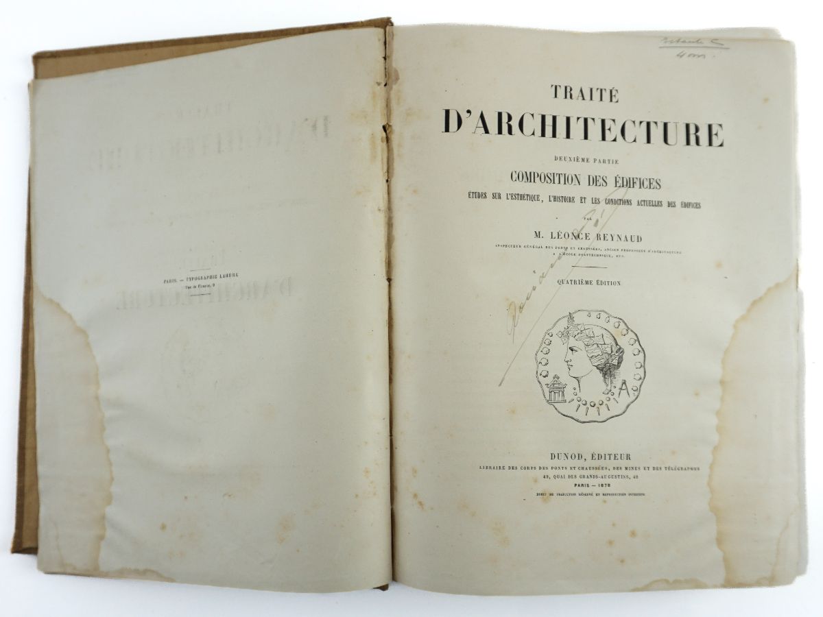 M.Léonce Reynaud, quatriéme edition, Paris : Vve C. Dunod et P. Vicq, 1894 ; 2 vol. (605 págs + 628 págs.). Encadernação em tela.