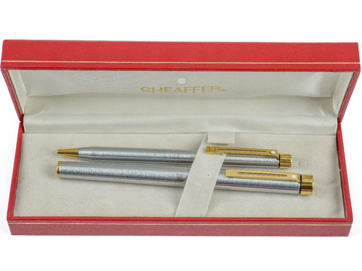 Corpo em aço e dourado. Aparo em ouro de 585 milésimas