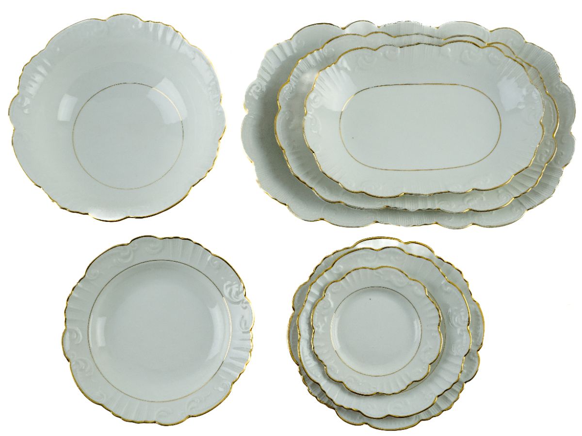 Composto de 24 pratos rasos; 12 de sopa; 12 de sobremesa; 12 de bolos;