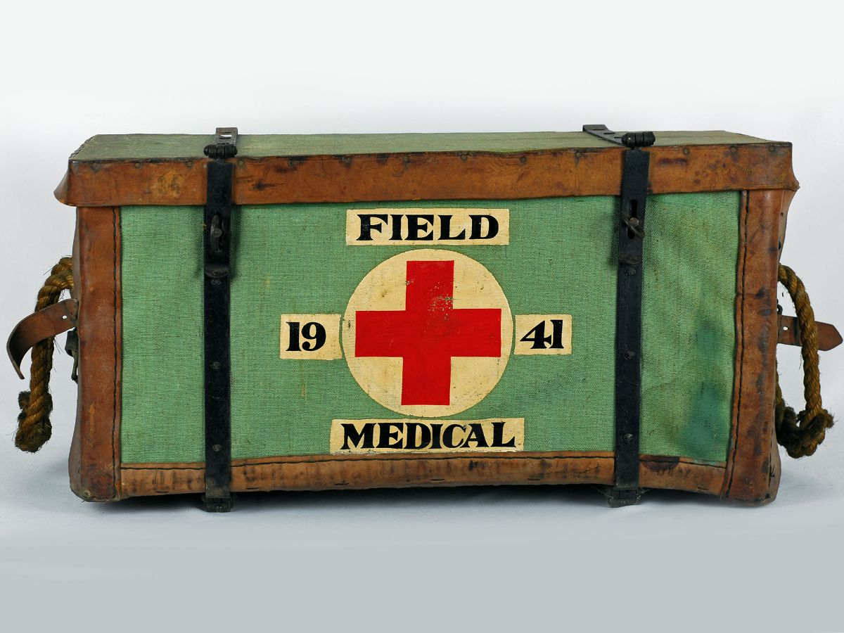 Junta-se 2 saquinhos de ligaduras e uma caixa metálica para compressas de gaze oxigenada